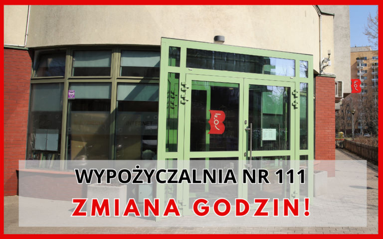 W dniach 20.10 – 24.10.2025 Wypożyczalnia nr 111 przy ulicy Mickiewicza 65 będzie nieczynna z powodu skontrum. Za utrudnienia przepraszamy