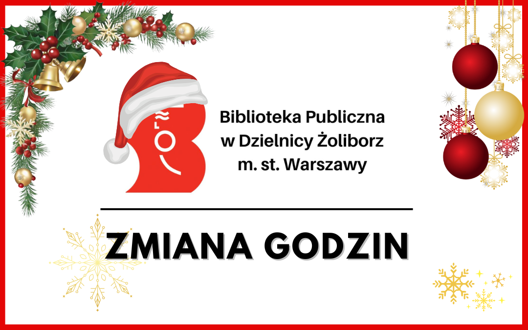 Drodzy Czytelnicy! 18 grudnia (czwartek) wszystkie Biblioteki Żoliborskie będą czynne w godzinach 8.00 – 12.00 23 grudnia (wtorek) oraz 31...