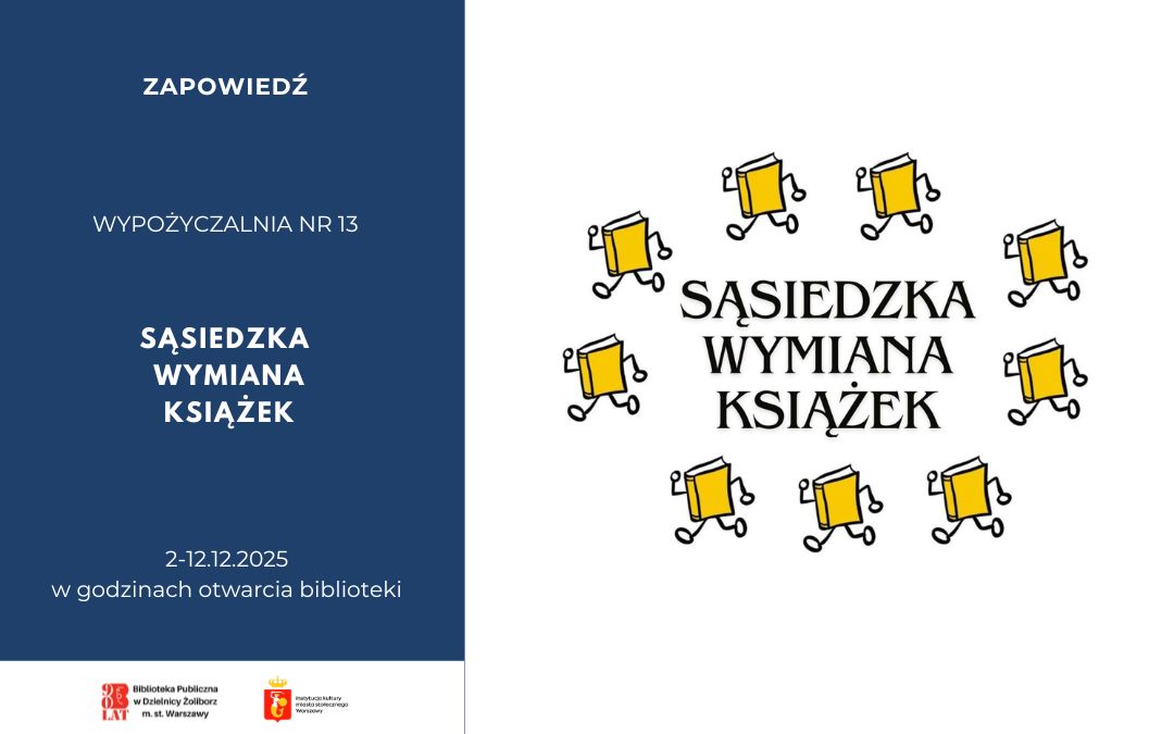 Zapraszamy do Biblioteki przy ul. Śmiałej 24 na Sąsiedzką Wymianę Książek. Możecie przynieść książki, których nie potrzebujecie już w domu, a...