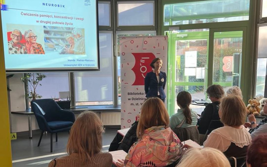W ramach Warszawskich Dni Seniora 2025 w filiach naszej Biblioteki odbyły się dwa inspirujące spotkania z cyklu warsztatów Neurobiku, poświęconych ćwiczeniom pamięci, koncentracji i rozwojowi intelektu w wieku dojrzałym. Oba spotkania poprowadziła dr Wanda Matras-Mastalerz – certyfikowany trener stymulacji pamięci i rozwoju intelektu, która w przystępny i inspirujący sposób przybliżyła uczestnikom tematykę pracy z mózgiem w wieku dojrzałym. Podczas warsztatów uczestnicy poznali praktyczne techniki wspierania pamięci, koncentracji oraz uwagi, a także dowiedzieli się, jak codziennymi nawykami i aktywnością intelektualną wspierać kondycję umysłu. Spotkania miały charakter interaktywny – nie zabrakło ćwiczeń, zadań pamięciowych i przykładów z życia, które zachęcały do dalszego rozwijania swojego potencjału poznawczego.
