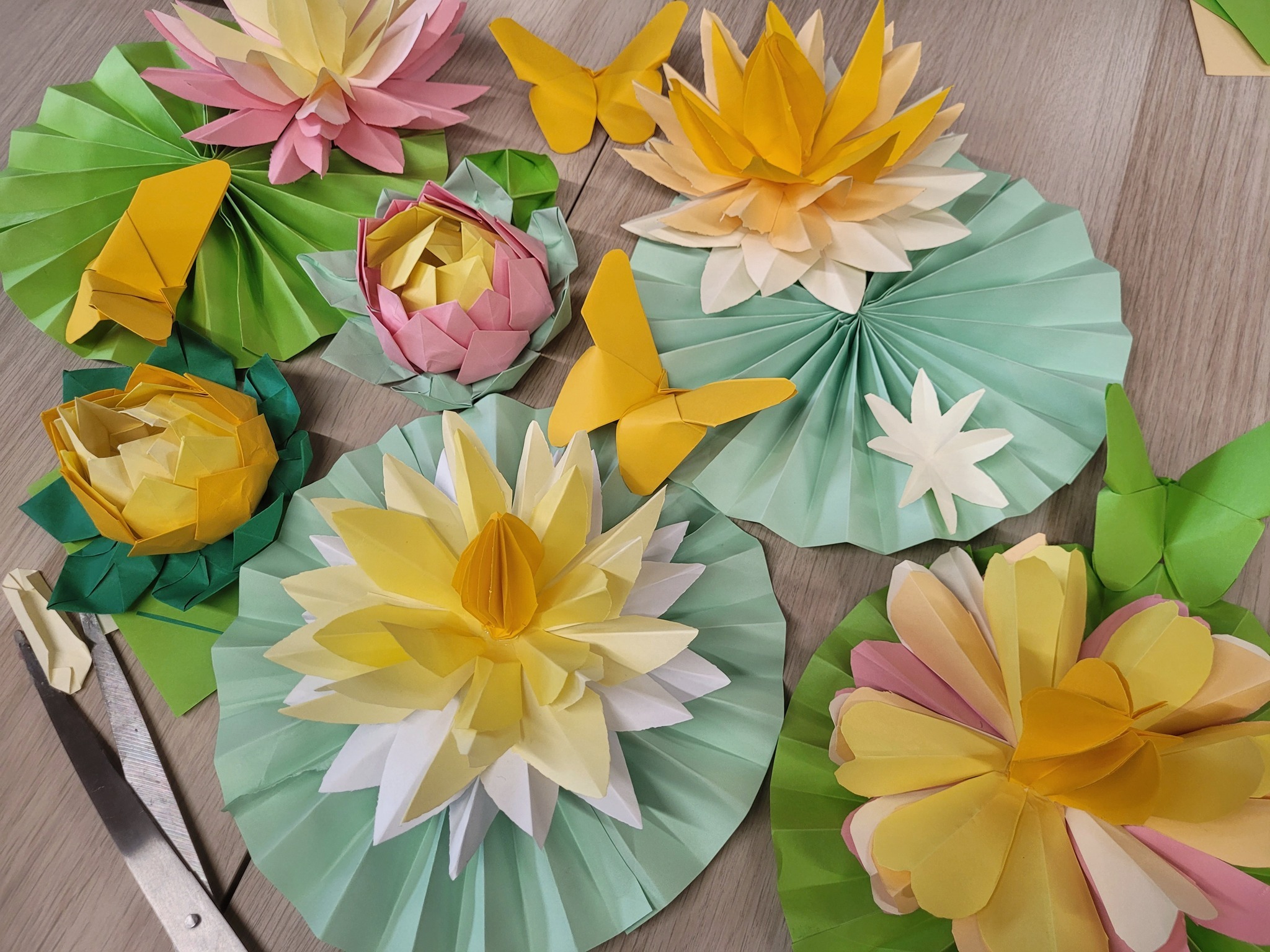 Na zajęciach tworzyliśmy papierowe kwiaty inspirowane roślinami wodnymi, a także motyle. Pracując z papierem kolorowym, nożyczkami i klejem, uczestnicy rozwijali swoje zdolności manualne i kreatywność.