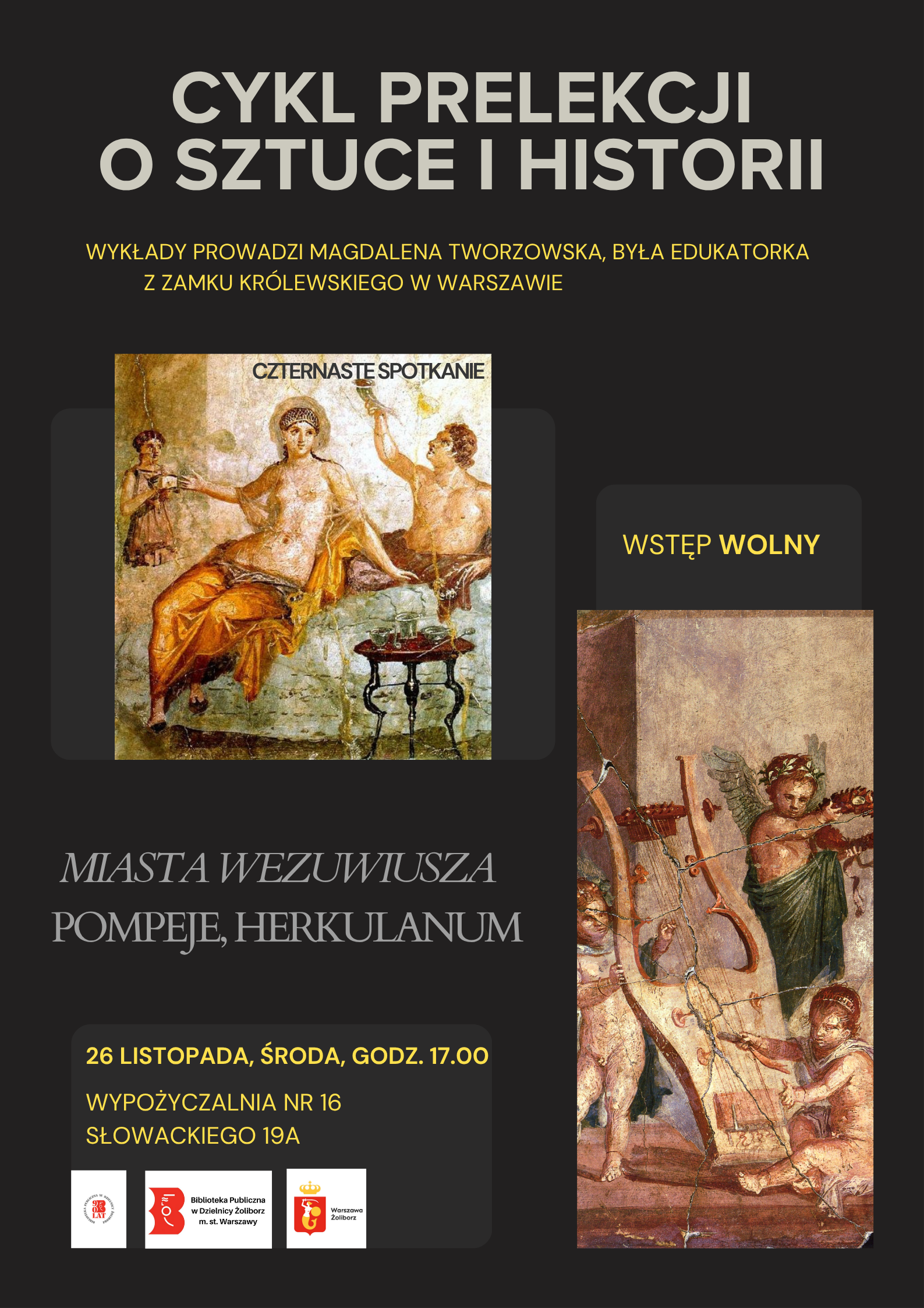 Zapraszamy miłośników sztuki, pasjonatów historii oraz osoby ciekawe świata do Wypożyczalni nr 16 na cykl prelekcji o sztuce i historii, który prowadzi była edukatorka z Zamku Królewskiego w Warszawie, Pani Magdalena Tworzowska.