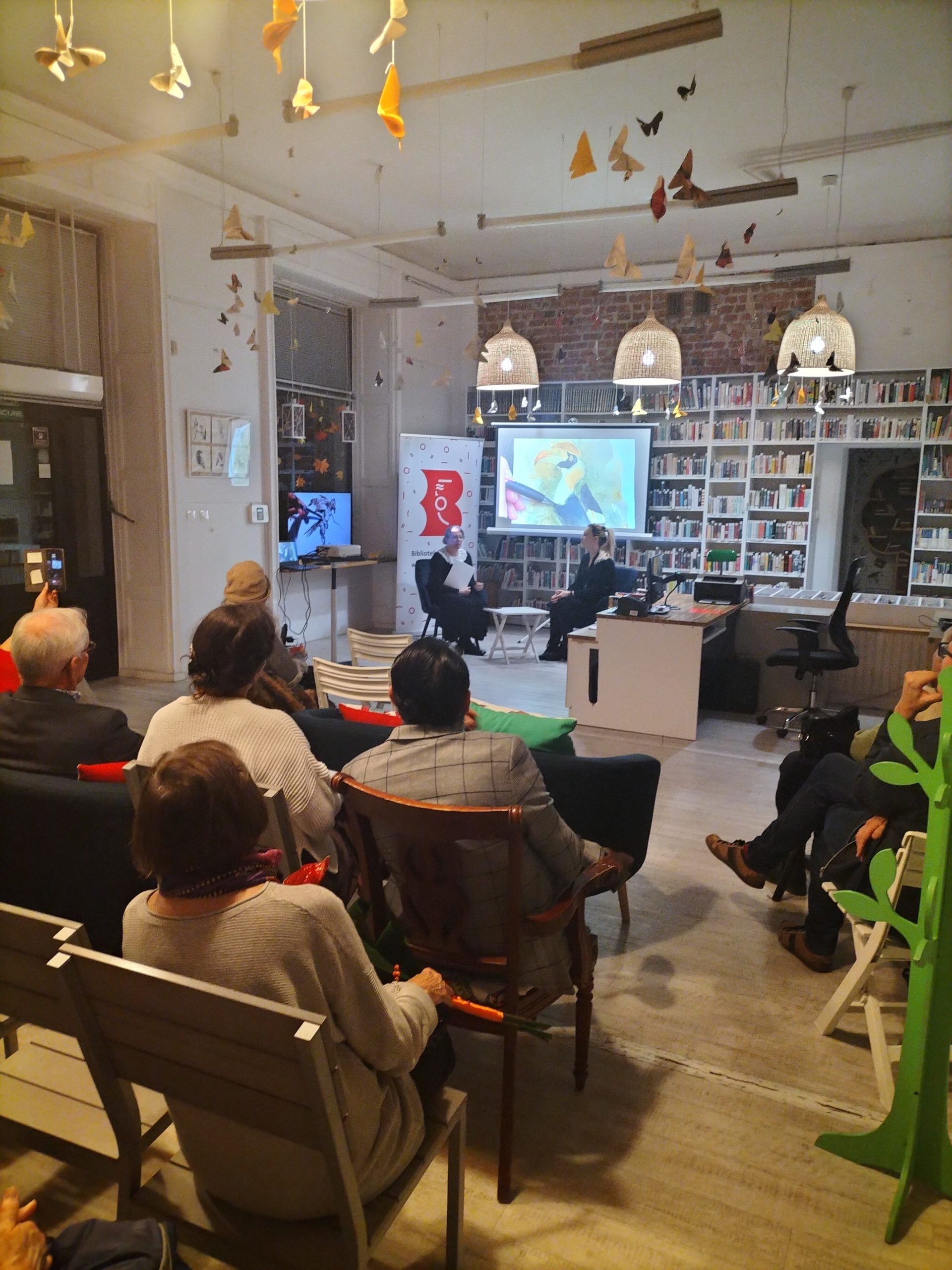 W ostatni piątek, 7 listopada 2025 roku, w Czytelni Pod Sowami odbył się wernisaż wystawy „Mea Animalia – zwierzęta, które mnie ocaliły” prezentującej prace Joanny Obryckiej – Parol. Odwiedzający mieli okazję dowiedzieć się więcej o prezentowanych ilustracjach oraz kulisach ich powstawania.