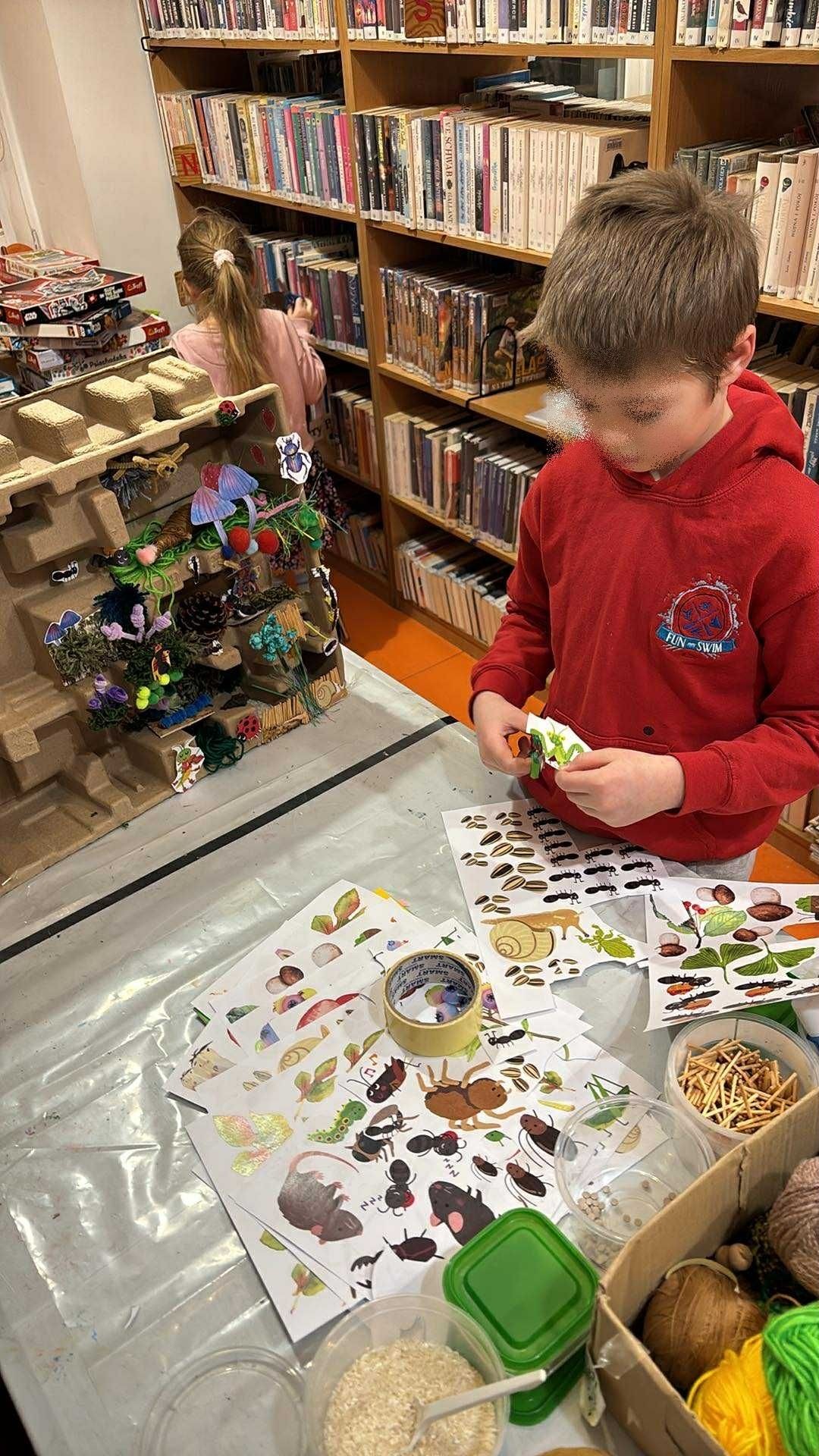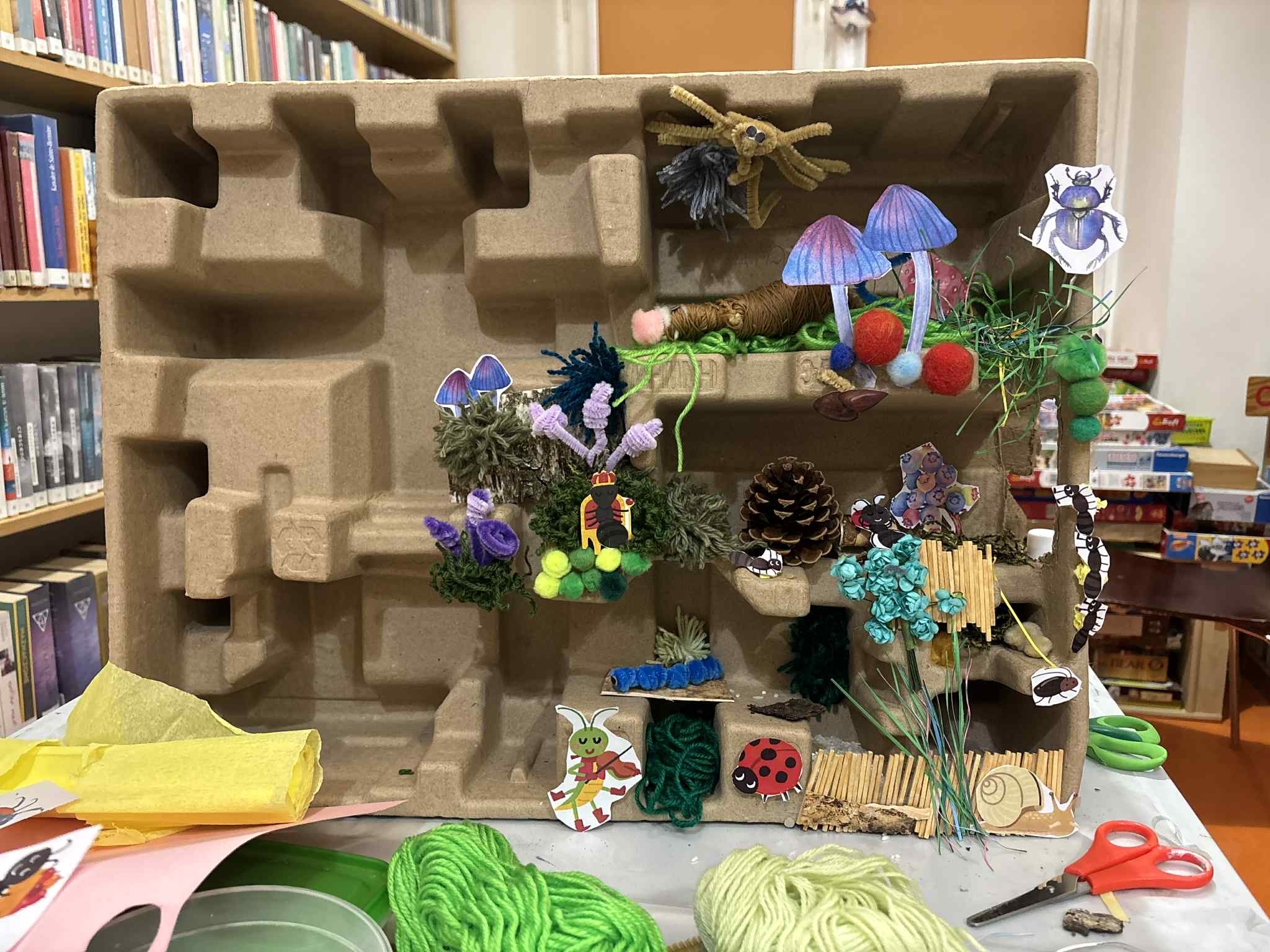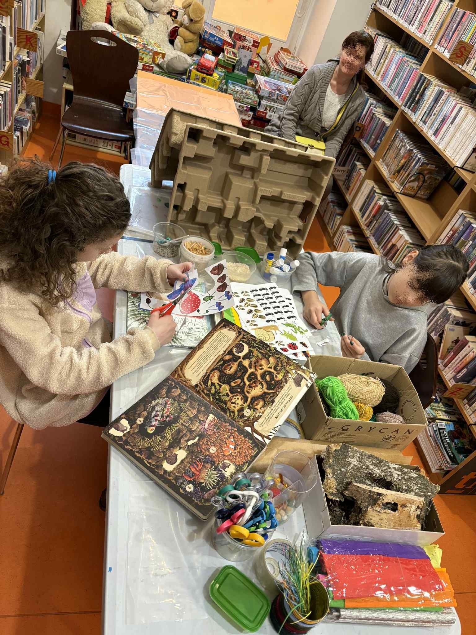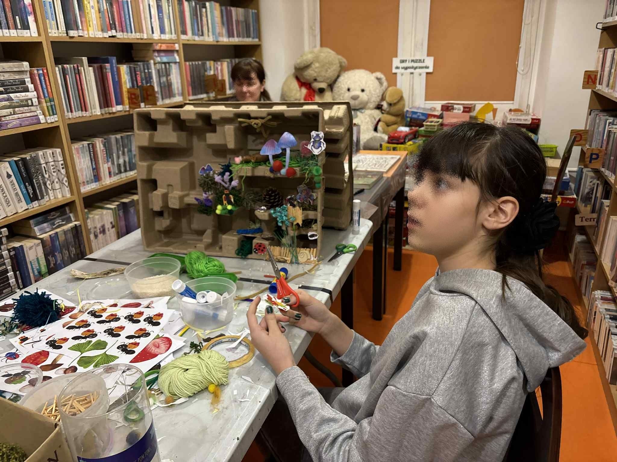 W miniony piątek, w Bibliotece przy ul. Śmiałej 24, powstały pierwsze elementy projektu “Mrówkarium”. Wszystko co jest na kartonowej makiecie wykonały dzieci, które włożyły w swoją pracę mnóstwo energii. Efekty są zaskakujące, pełne pomysłowości i wyobraźni. W domku owadów zamieszkał pająk, krecik, gąsieniczki i inne stworzonka będące elementami tej pięknej makiety. Nasi uczestnicy czerpali inspiracje z różnych książek o mrówkach i owadach, m.in.: “Co robią mrówki” z serii Opowiem ci Mamo, “Wielka Księga Robali” Yuvala Zommera czy “Tysiąc i jedna mrówka” Joanny Rzezak. Dziękujemy za pracowite popołudnie w naszej Bibliotece i zapraszamy do wspólnej budowy “Mrówkarium”.