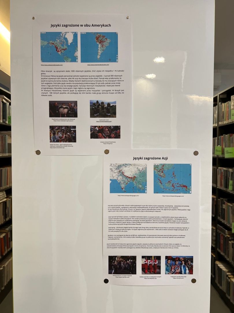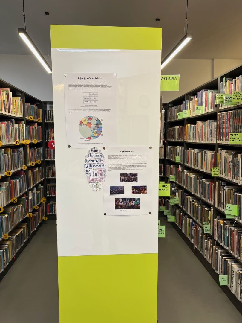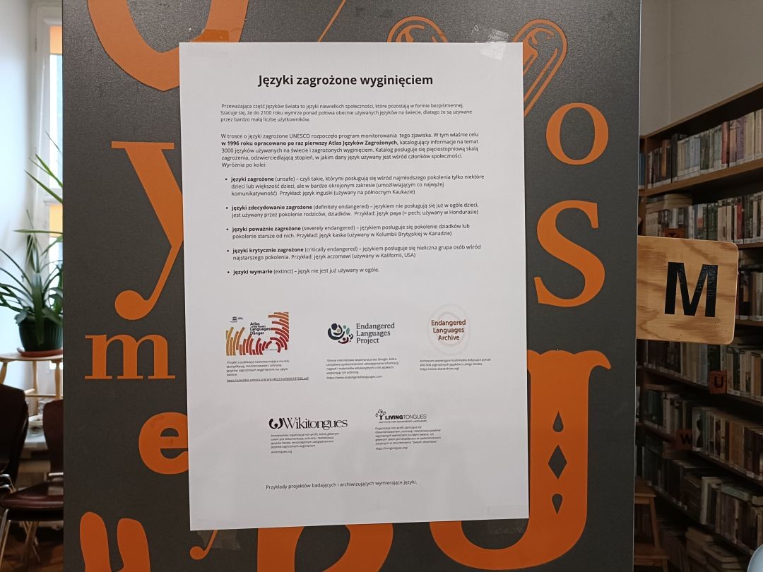 W Wypożyczalni nr 13 oraz Wypożyczalni nr 111 czytelnicy mogą zapoznać się z prezentacją poświęconą różnorodności językowej na świecie oraz językom ginącym. Obecnie istnieje około 7 tysięcy żywych języków, jednak większość z nich to języki niszowe, którymi posługuje się od kilku do kilkunastu tysięcy osób. Szacuje się, że do końca tego stulecia może zniknąć niemal połowa używanych języków.