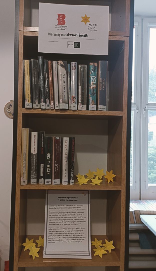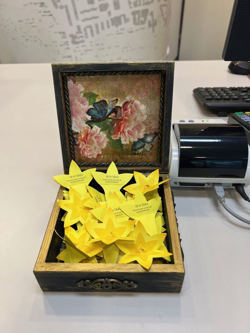 W rocznicę tego wydarzenia Muzeum Historii Żydów Polskich POLIN organizuje corocznie akcję społeczno-edukacyjną „Żonkile”, podczas której wolontariusze rozdają na ulicach Warszawy papierowe żonkile – symbol pamięci o powstańcach z getta warszawskiego. Nasza Biblioteka również pragnąć uczcić pamięć o poległych, przyłącza się do tej inicjatywy. Od piątku, 17 kwietnia, w naszych bibliotekach czytelnicy znajdą papierowe kwiaty, które przygotowaliśmy wraz z naszymi wolontariuszami. Papierowe żonkile można przypiąć do ubrania, by w ten symboliczny sposób oddać hołd powstańcom.