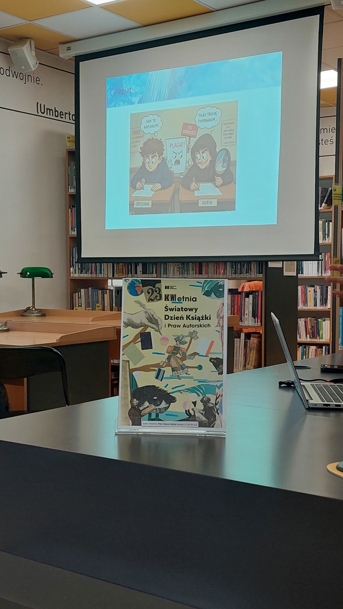 23 kwietnia w Czytelni Naukowej nr XVI odbyła się lekcja biblioteczna w formie wykładu na temat prawa autorskiego, w których uczestniczyli uczniowie z III klasy szkoły średniej i VI klasy szkoły podstawowej.