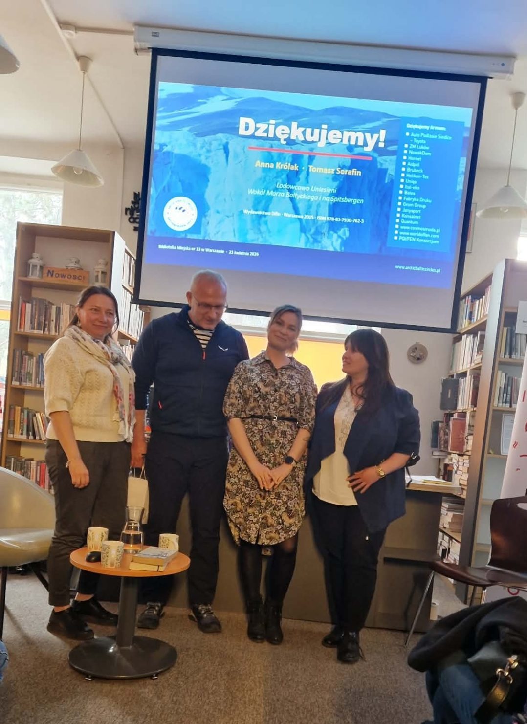 23 kwietnia w Wypożyczalni nr 13 przy ul. Śmiałej 24 odbyło się spotkanie podróżnicze z autorami książki „Lodowcowo uniesieni. Wokół Morza Bałtyckiego i na Spitsbergen” – Anną Królak i Tomaszem Serafinem – oraz Agnieszką Woźniak, współtowarzyszką wyprawy.