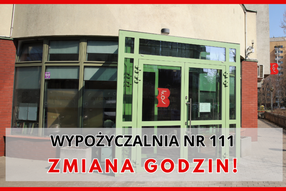 W dniach 20.10 – 24.10.2025 Wypożyczalnia nr 111 przy ulicy Mickiewicza 65 będzie nieczynna z powodu skontrum. Za utrudnienia przepraszamy