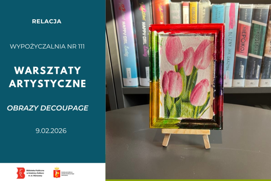 9 lutego 2026 Wypożyczalnię nr 111 odwiedziła młodzież z Zespołu Szkół Specjalnych nr 38, która wzięła udział w bibliotecznych warsztatach artystycznych. Podczas zajęć powstały piękne… Czytaj więcej »Obrazy decoupage oraz serduszkowe zawieszki