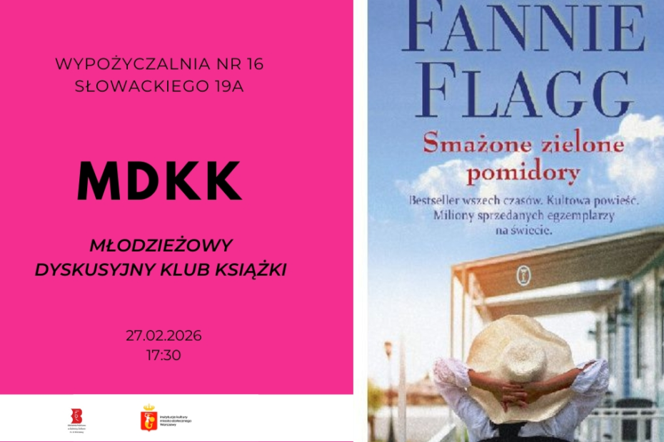 Podczas kolejnego spotkania MDKK będziemy omawiać książkę Fannie Flagg pt. „Smażone zielone pomidory”. GDZIE: Wypożyczalnia nr 16, ul. Słowackiego 19a KIEDY: 21 stycznia 2026… Czytaj więcej »Młodzieżowy Dyskusyjny Klub Książki