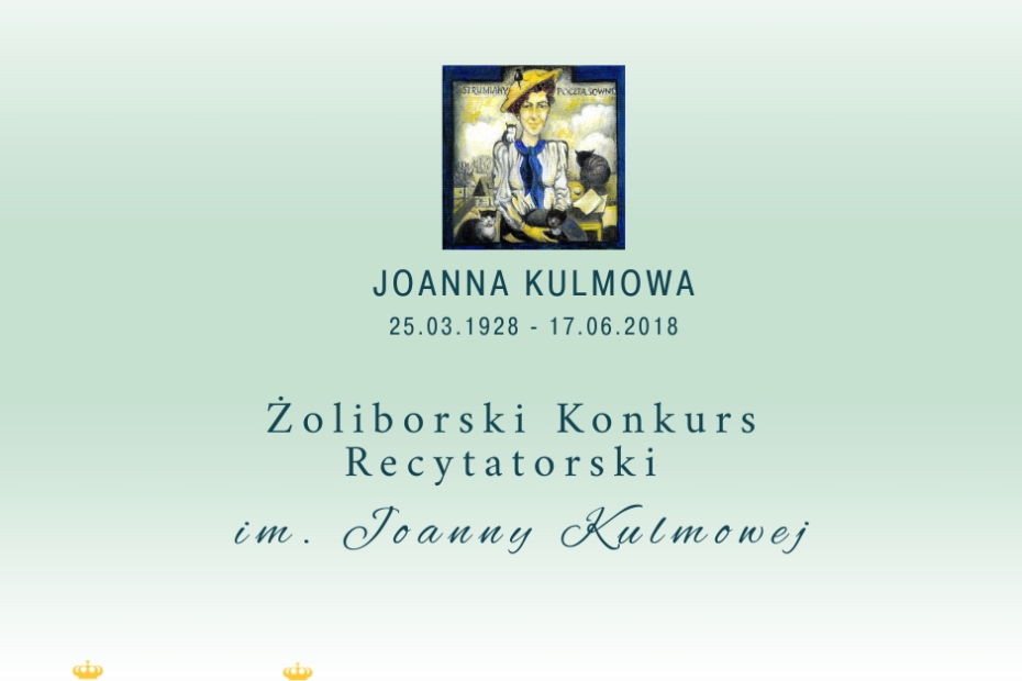 Biblioteka Publiczna w Dzielnicy Żoliborz m.st. Warszawy wraz ze Społecznym Domem Kultury WSM Warszawa oraz Fundacją Joanny Kulmowej i Jana Kulmy serdecznie zapraszają uczennice i… Czytaj więcej »Czwarty Żoliborski Konkurs Recytatorski im. Joanny Kulmowej o zasięgu wojewódzkim