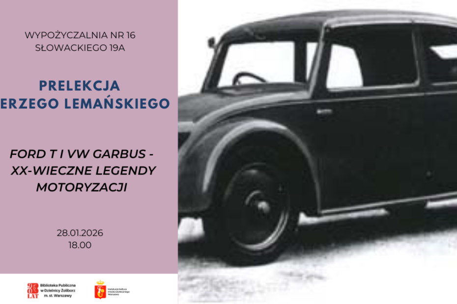 28 stycznia w Wypożyczalni nr 16 odbędzie się prelekcja Jerzego Lemańskiego: “Ford T i VW Garbus: XX-wieczne legendy motoryzacji”. Zapraszamy na spotkanie z Jerzym Lemańskim,… Czytaj więcej »Prelekcja Jerzego Lemańskiego – “Ford T i VW Garbus: XX-wieczne legendy motoryzacji”