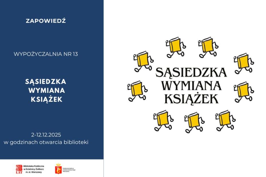 Zapraszamy do Biblioteki przy ul. Śmiałej 24 na Jesienną Sąsiedzką Wymianę Książek. Możecie przynieść książki, których nie potrzebujecie już w domu, a w zamian wziąć… Czytaj więcej »Sąsiedzka Wymiana Książek