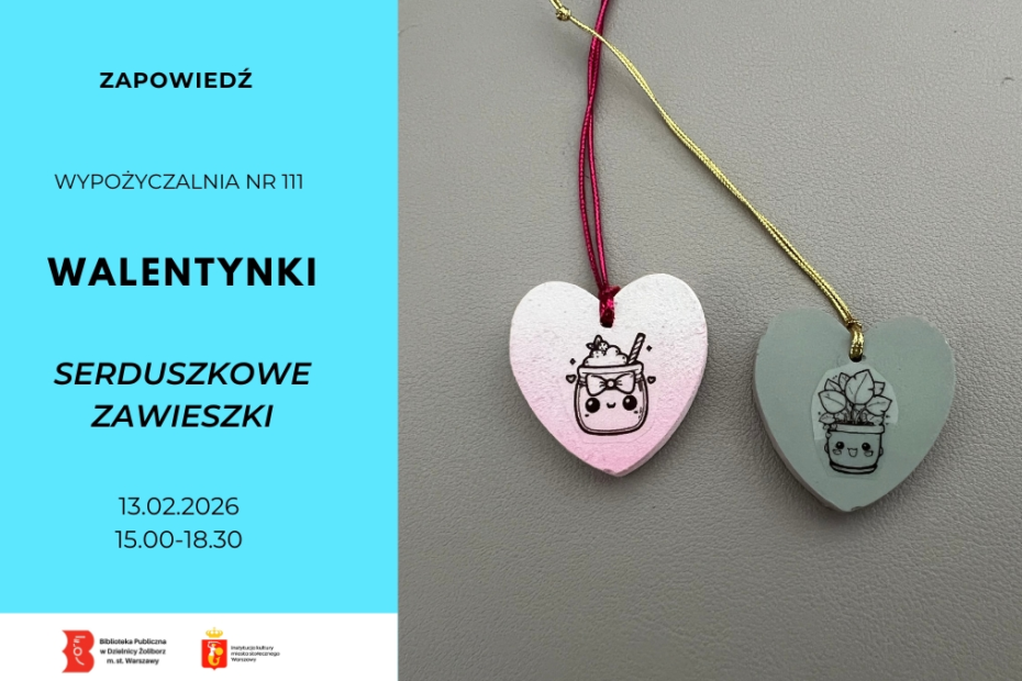 Walentynkowe warsztaty artystyczne Z okazji walentynek zapraszamy na warsztaty artystyczne, podczas których wykonamy serduszkowe zawieszki oraz ozdobimy serduszka techniką mandali kropkowanej data: 13.02.2026 godzina: 15.00-18.30… Czytaj więcej »Serduszkowe warsztaty walentynkowe