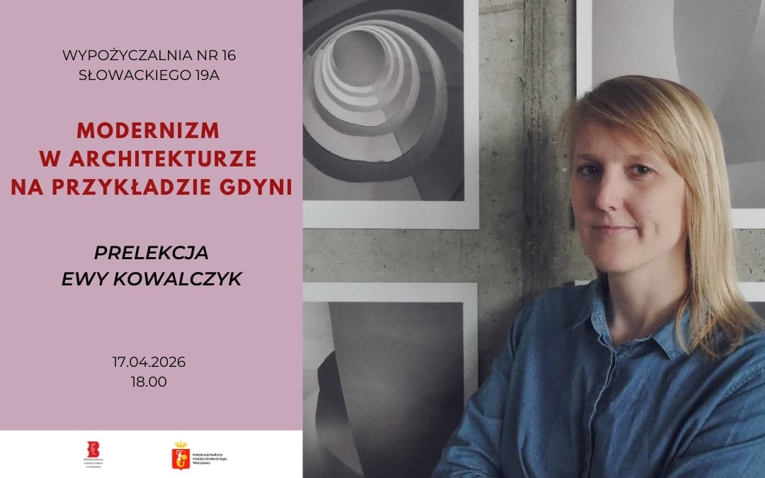 17 kwietnia 18:00 - 20:00 Wypożyczalnia nr 16 „Modernizm w architekturze na przykładzie Gdyni”. Prelekcja Ewy Kowalczyk – warszawianki, która pokochała Gdynię ul. Słowackiego 19a